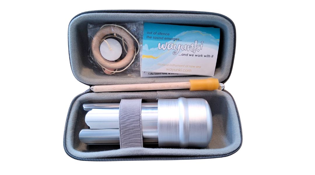The Wayunki is a a unique aluminum instrument used for meditation, relaxation, ceremonies, healing and playing for fun.
